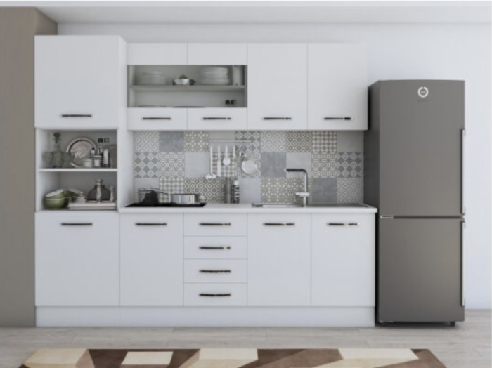 Amenajarea bucatariei este o decizie destul de grea deoarece petrecem mult timp in aceasta. Daca spatiul tau se rezuma la 220cm si esti un iubitor al culorii Alb, noi iti recomandam mobila de bucatarie Karina!