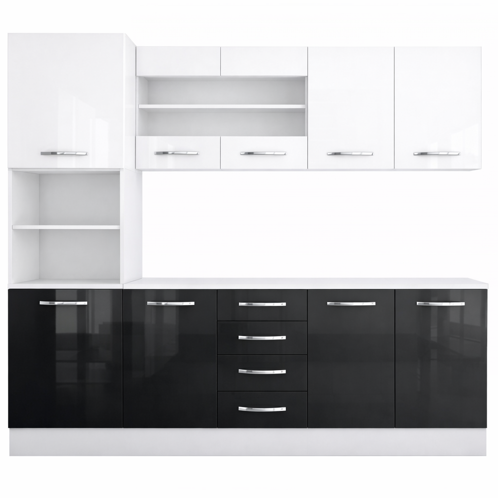 Daca spatiul tau se rezuma la 220cm si esti un iubitor al culorii lucioase, noi iti recomandam mobila de bucatarie Antonia Mdf!