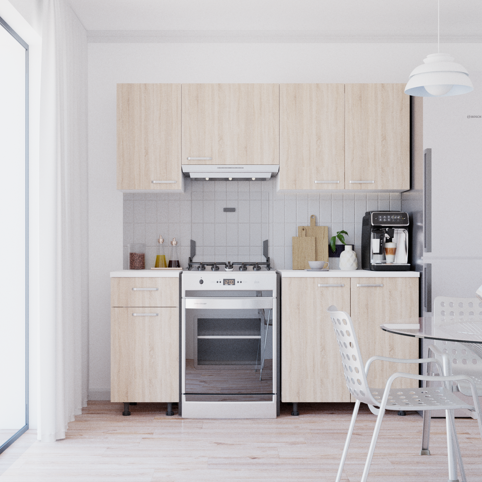 Daca spatiul tau se rezuma la 180cm si esti un iubitor al culorii Sonona&Alb, noi iti recomandam mobila de bucatarie Odessa!!!