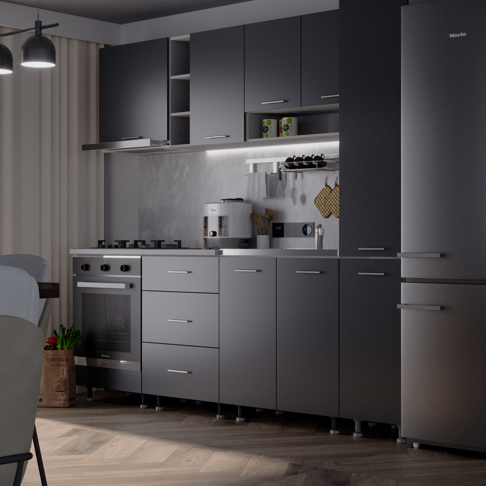 Daca spatiul tau se rezuma la 240cm si esti un iubitor al culorii Antracit, noi iti recomandam mobila de bucatarie Sena!