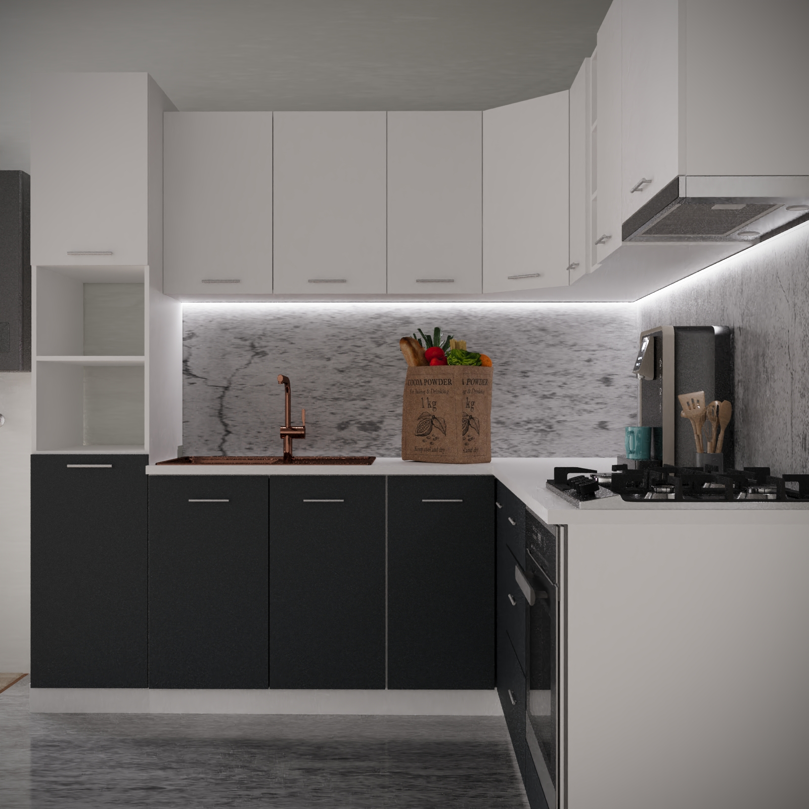Bucatarie Sena Colt 220 x 220 cm Alb&Antracit