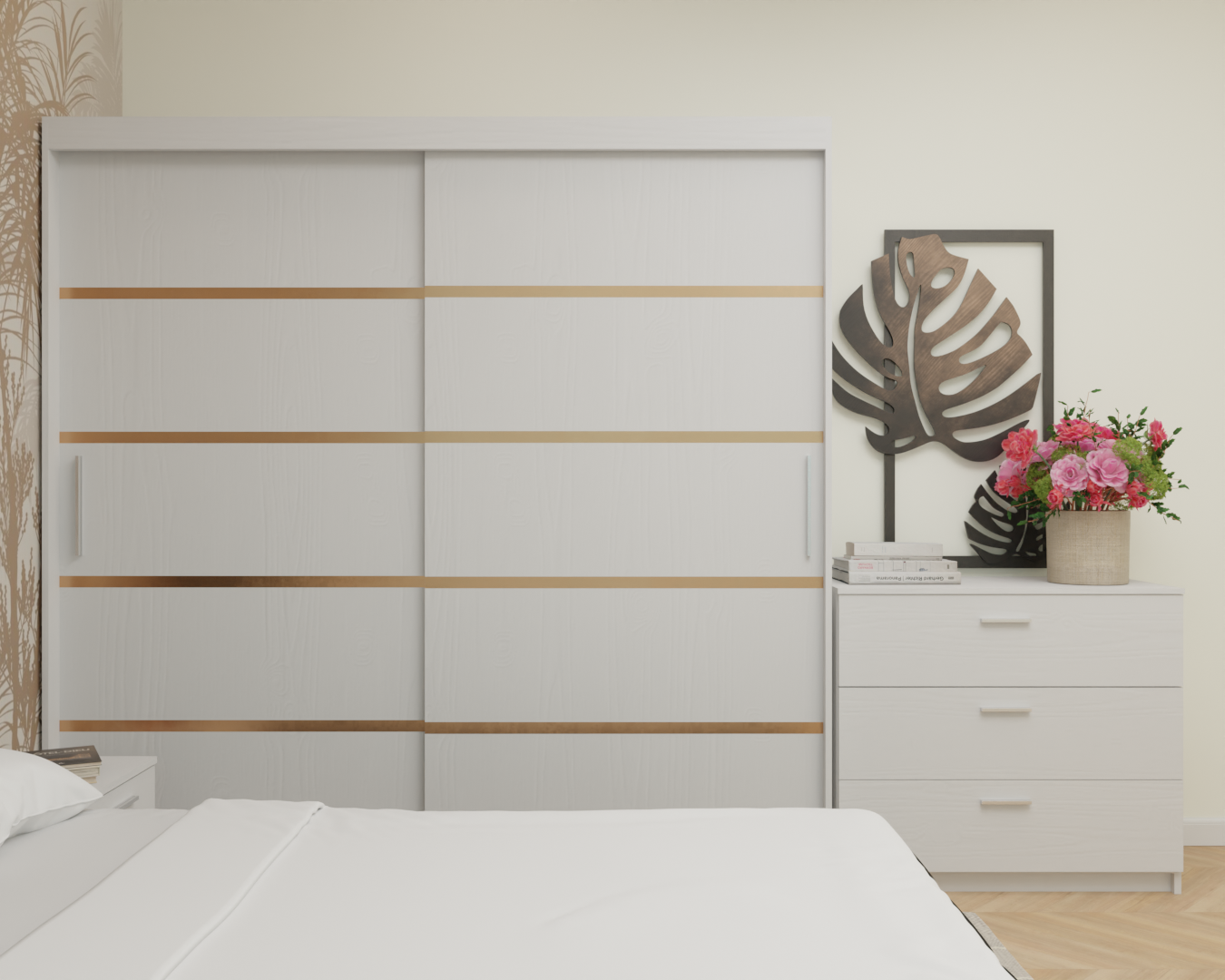 Alege Setul de dormitor MILANO fără saltea, un ansamblu de mobilier modern, conceput pentru confort, organizare și un design echilibrat. Ideal pentru dormitoare matrimoniale, acest set oferă spații generoase de depozitare și un aspect elegant, potrivit oricărui stil de amenajare.