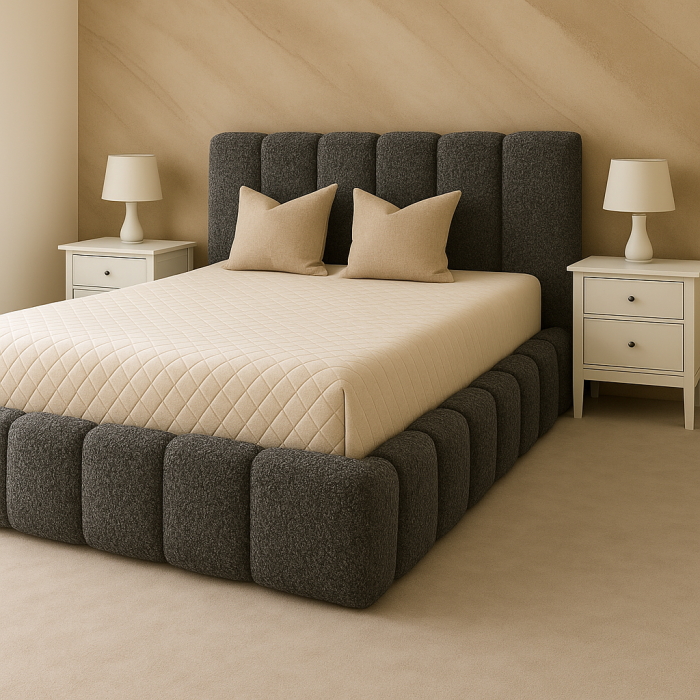 Tăblia înaltă și capitonată oferă un plus de rafinament și confort, ideală pentru momentele de relaxare.
