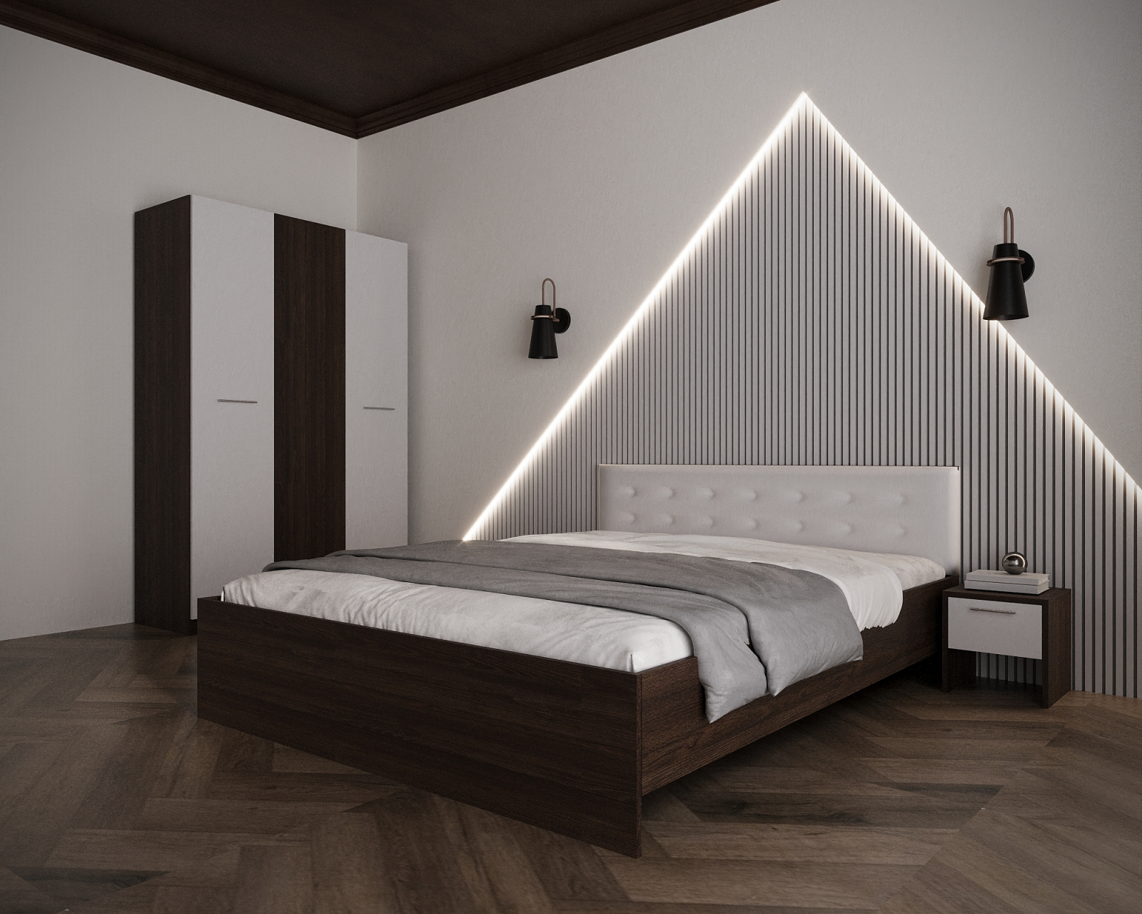 Dormitor Adria Tapitat 3 Usi Wenge&Alb