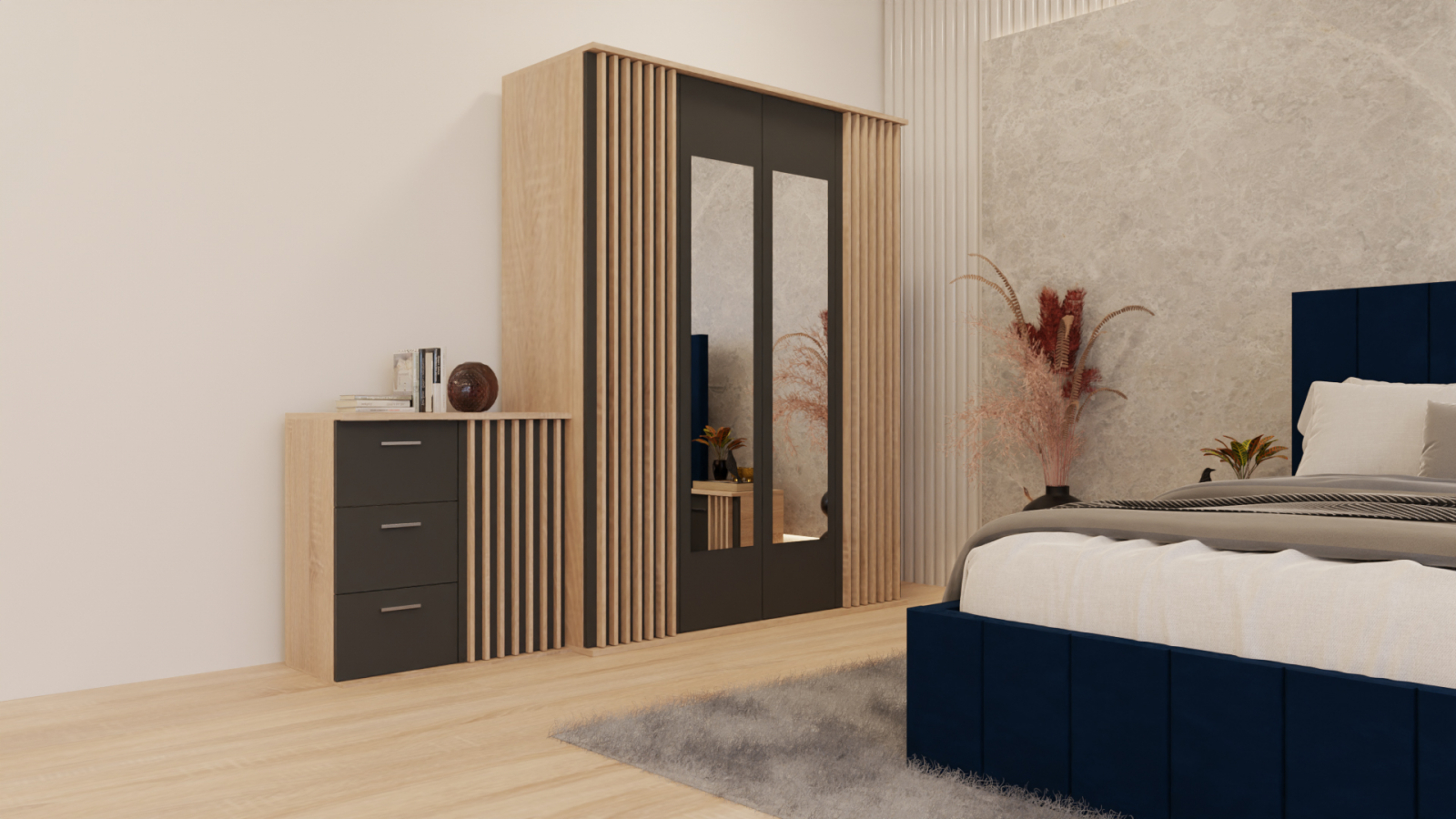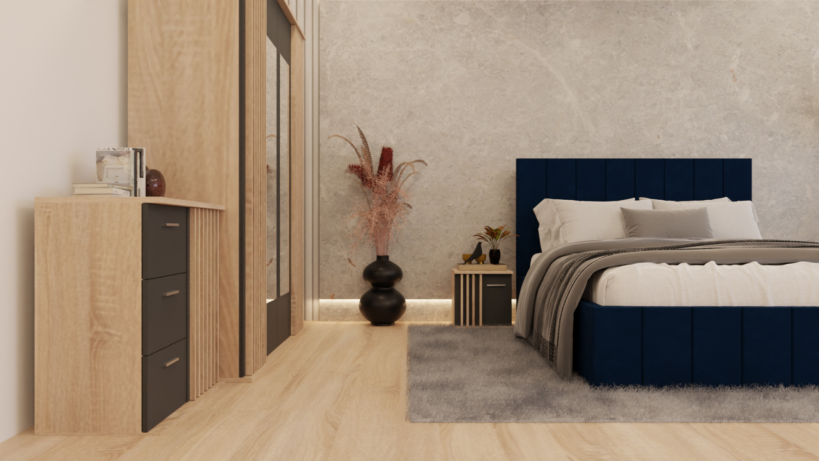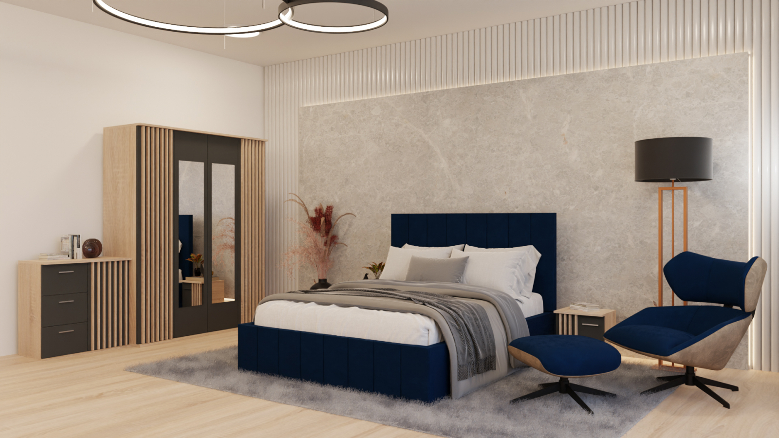 Dormitor: Dallas Cu Pat Tapitat Albastru