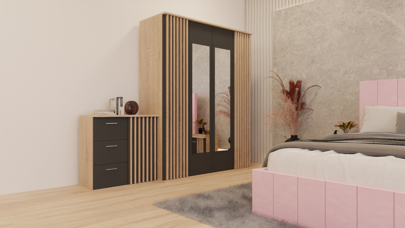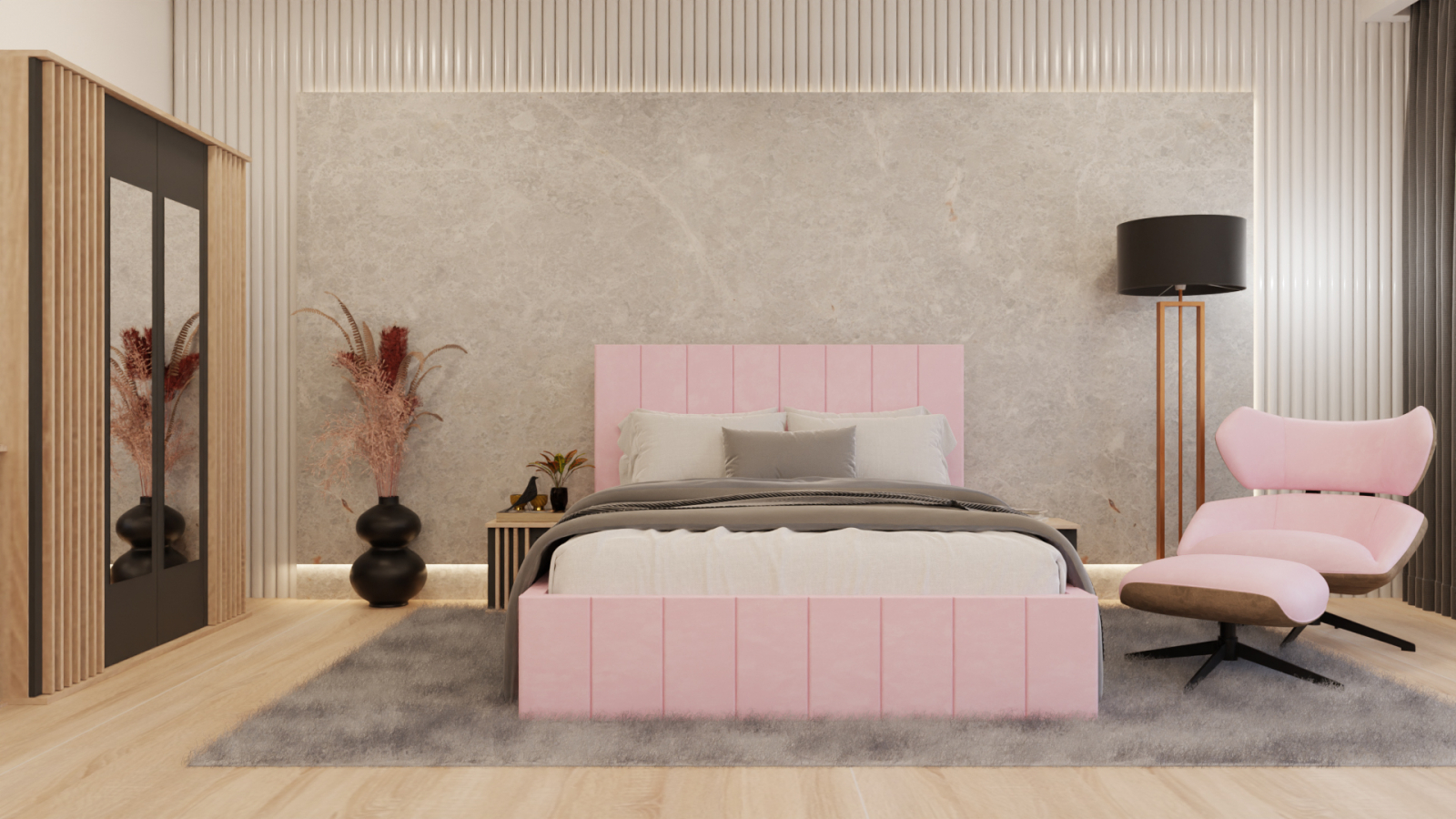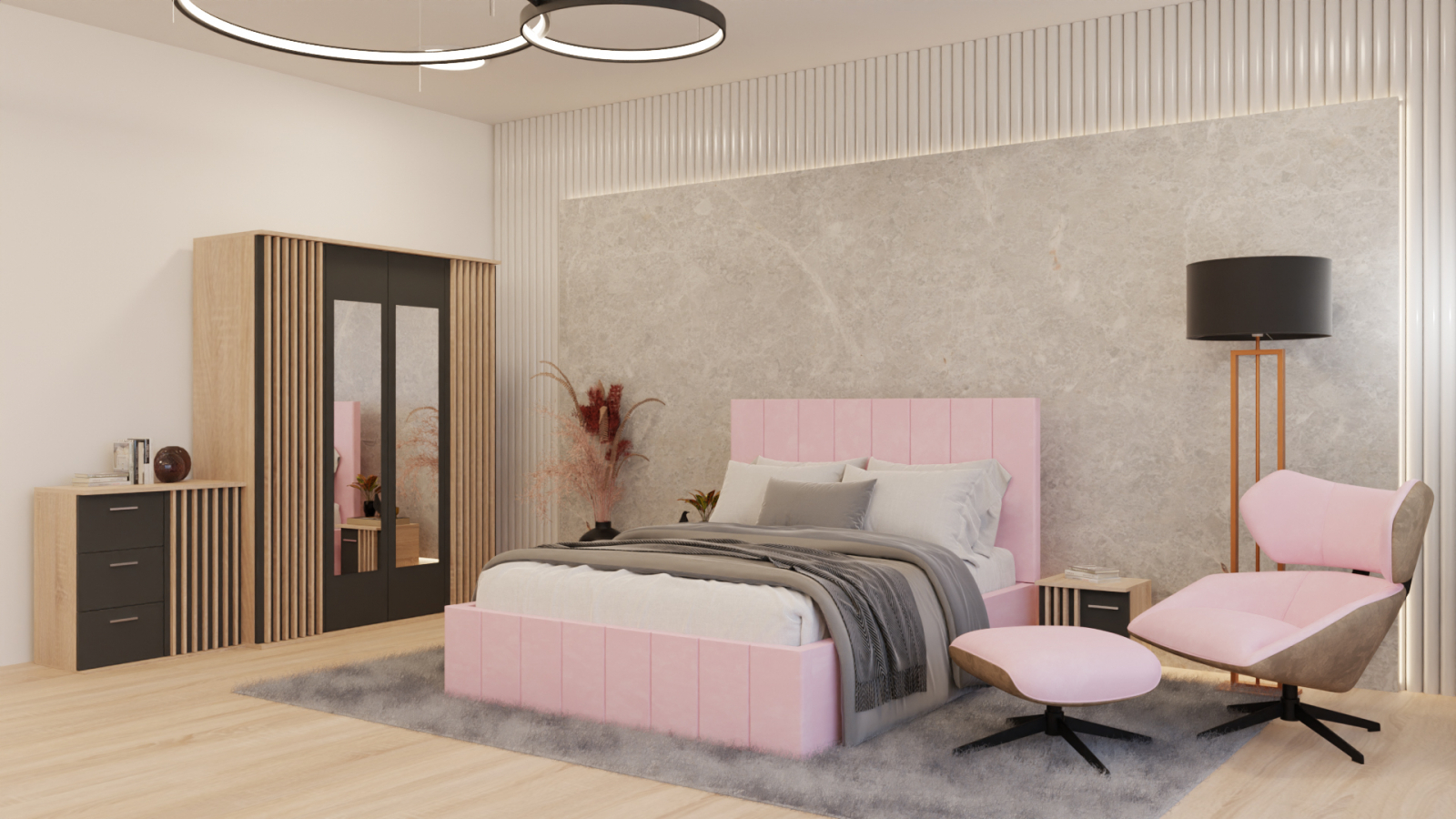 Dormitor: Dallas Cu Pat Tapitat Roz