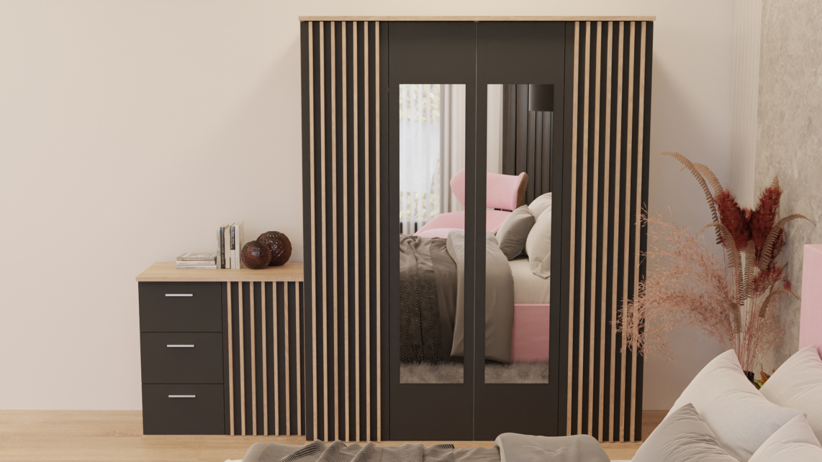 Ansamblul este realizat din PAL de 16mm, cant PVC si manere plastic.