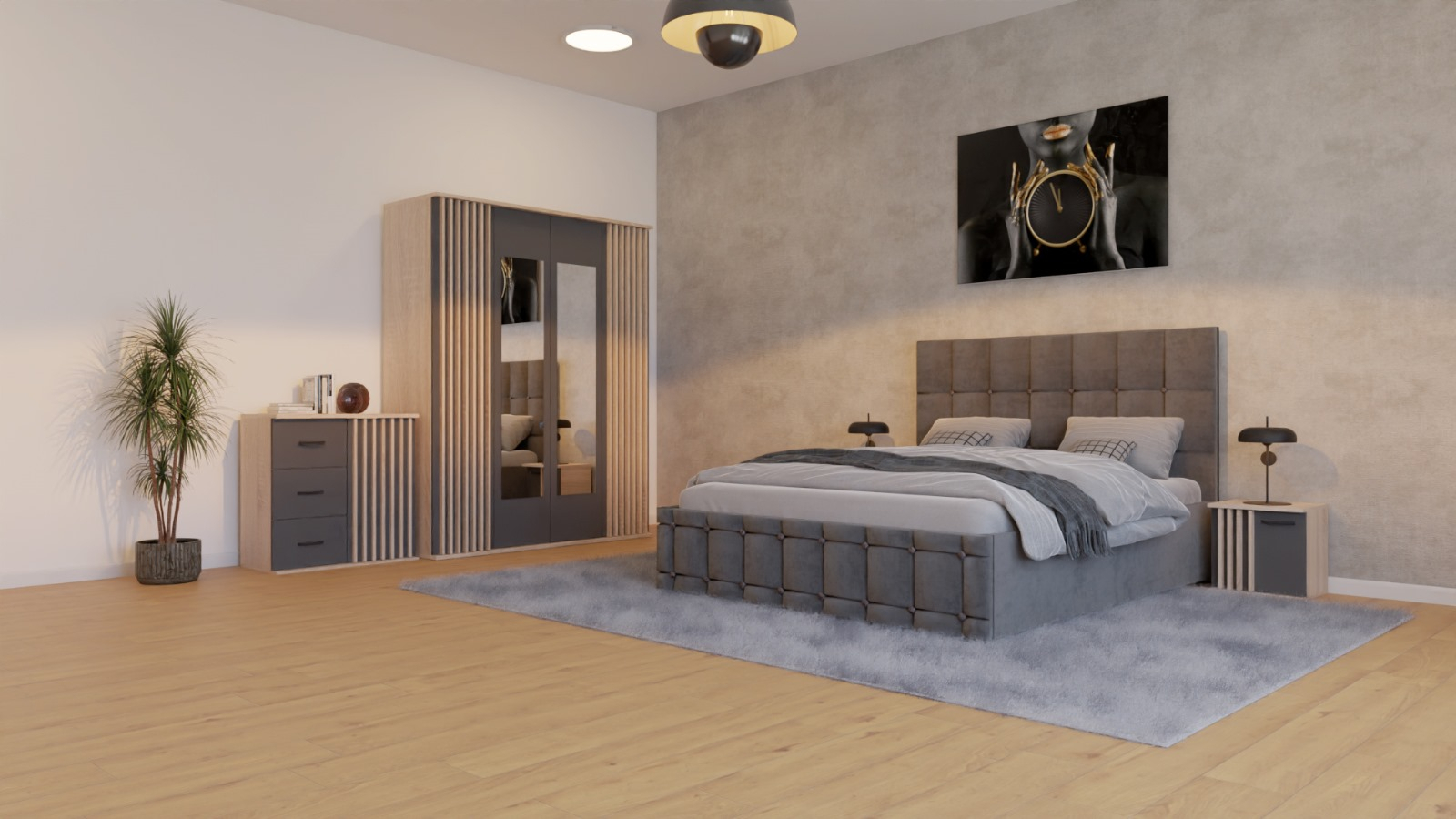 Dormitor: Dallas Cu Pat Tapitat Gri