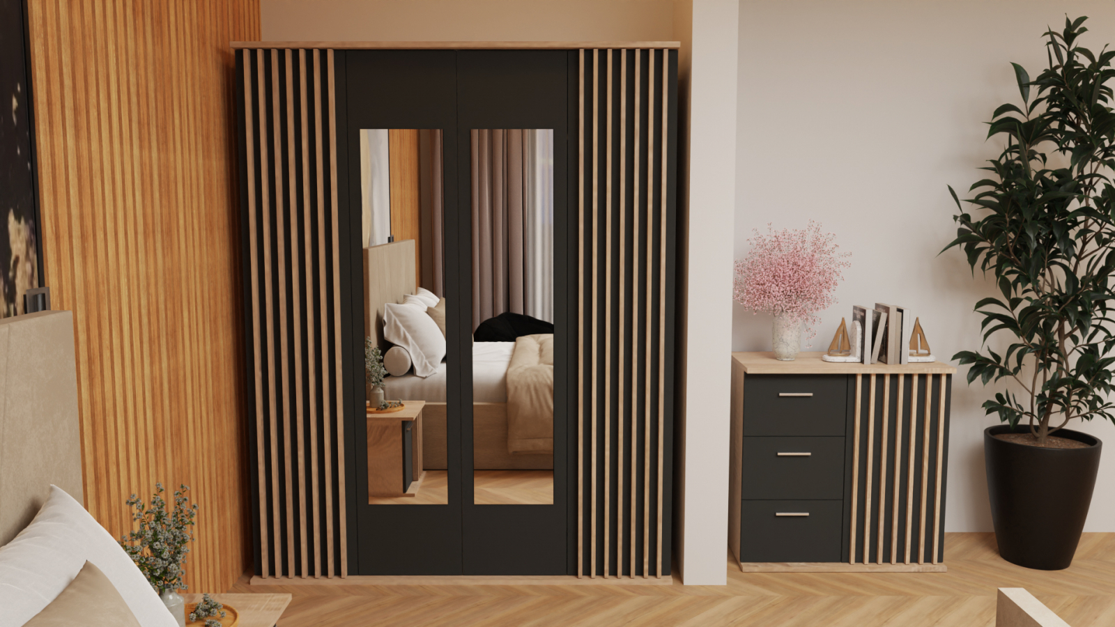 Ansamblul este realizat din PAL de 16mm, cant PVC si manere plastic.
