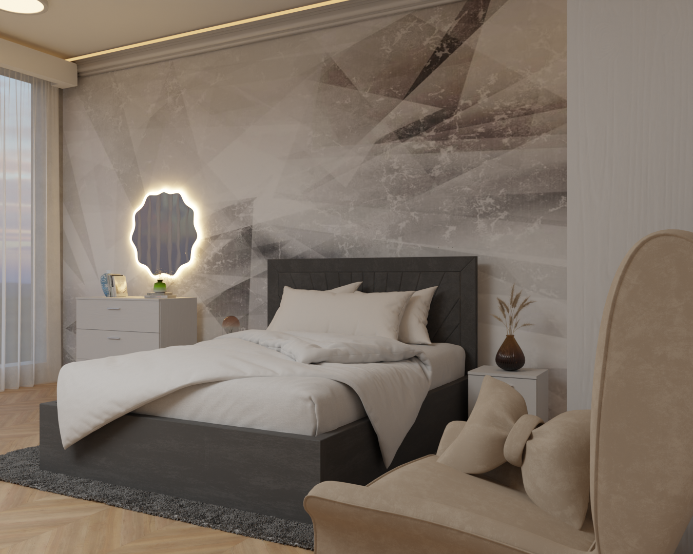 Dormitor Lotus Pat Tapitat Dressing 200x200 Alb&Antracit cu oglinda