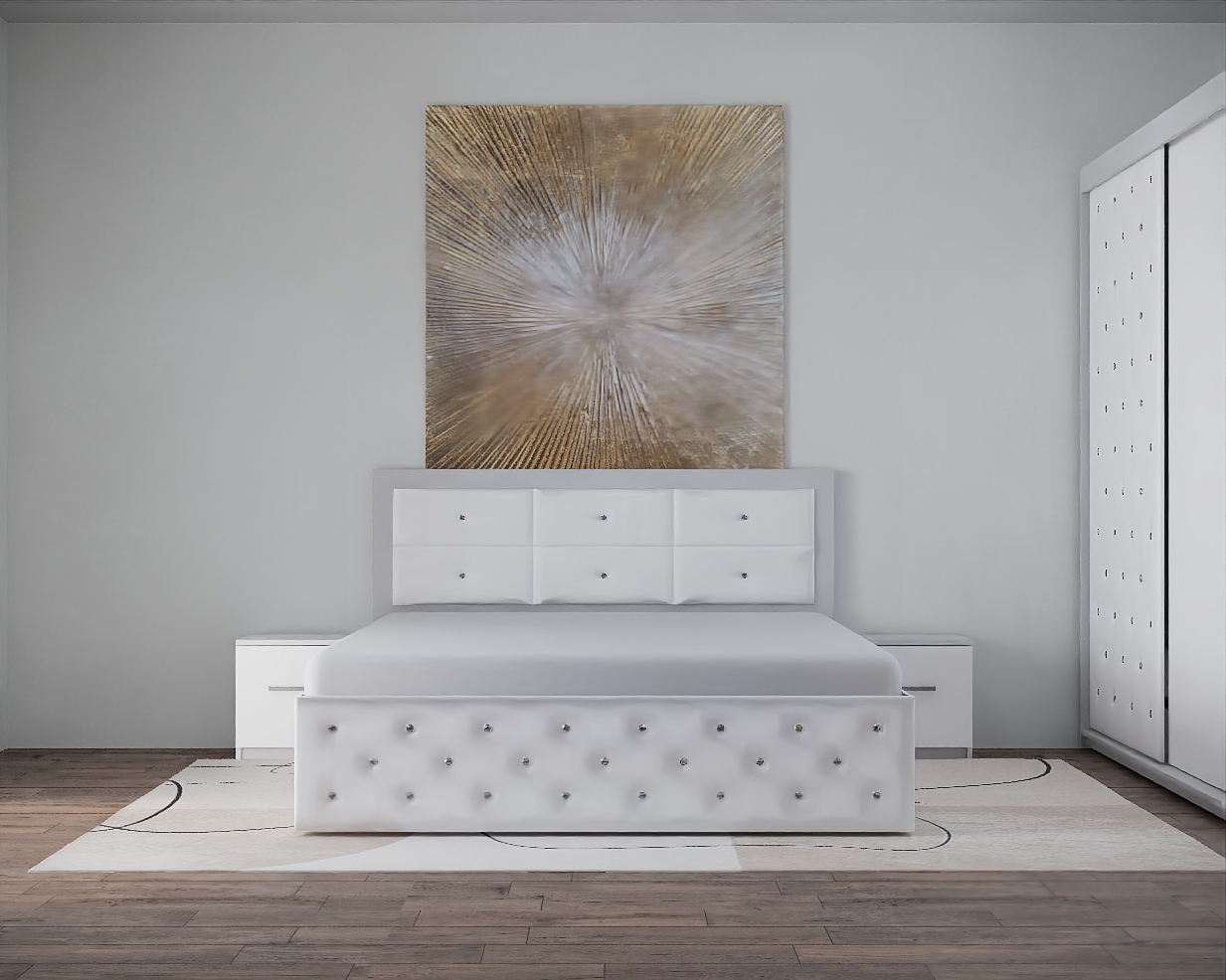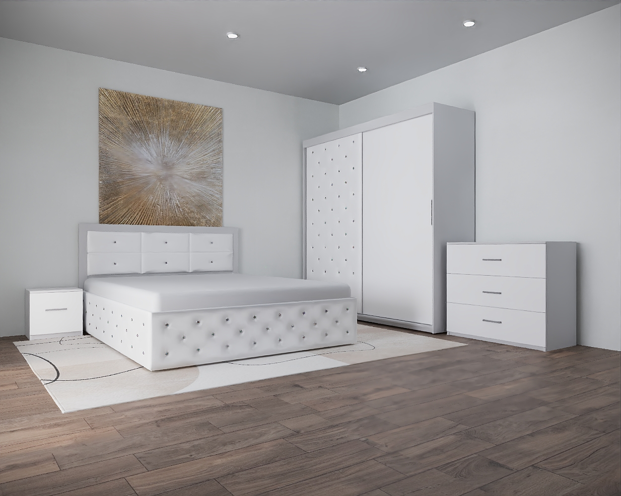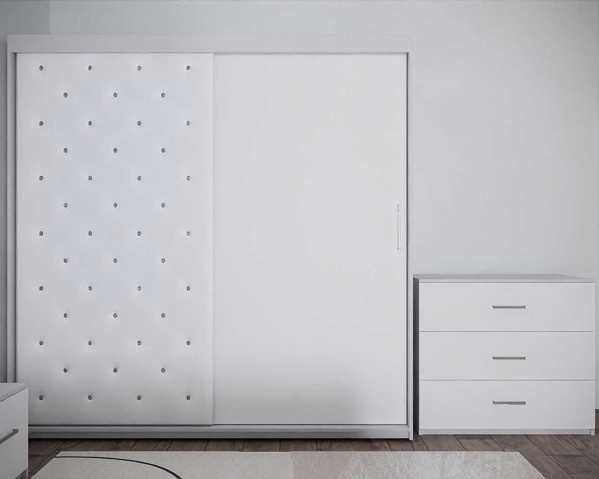 Dormitor Nemira New Alb Tapitat 2 Usi