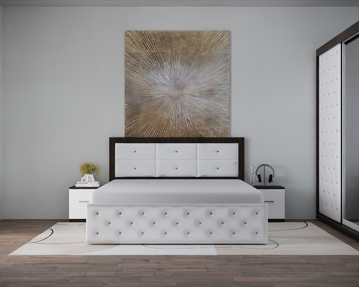 Dormitor Nemira New Wenge&Alb Tapitat 2 Usi cu Oglinda