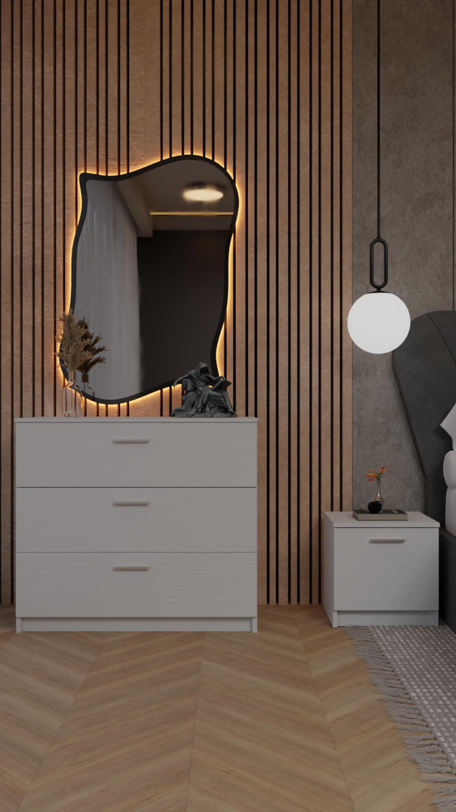 Ansamblul este realizat din PAL de 16mm, cant PVC si manere aluminiu.