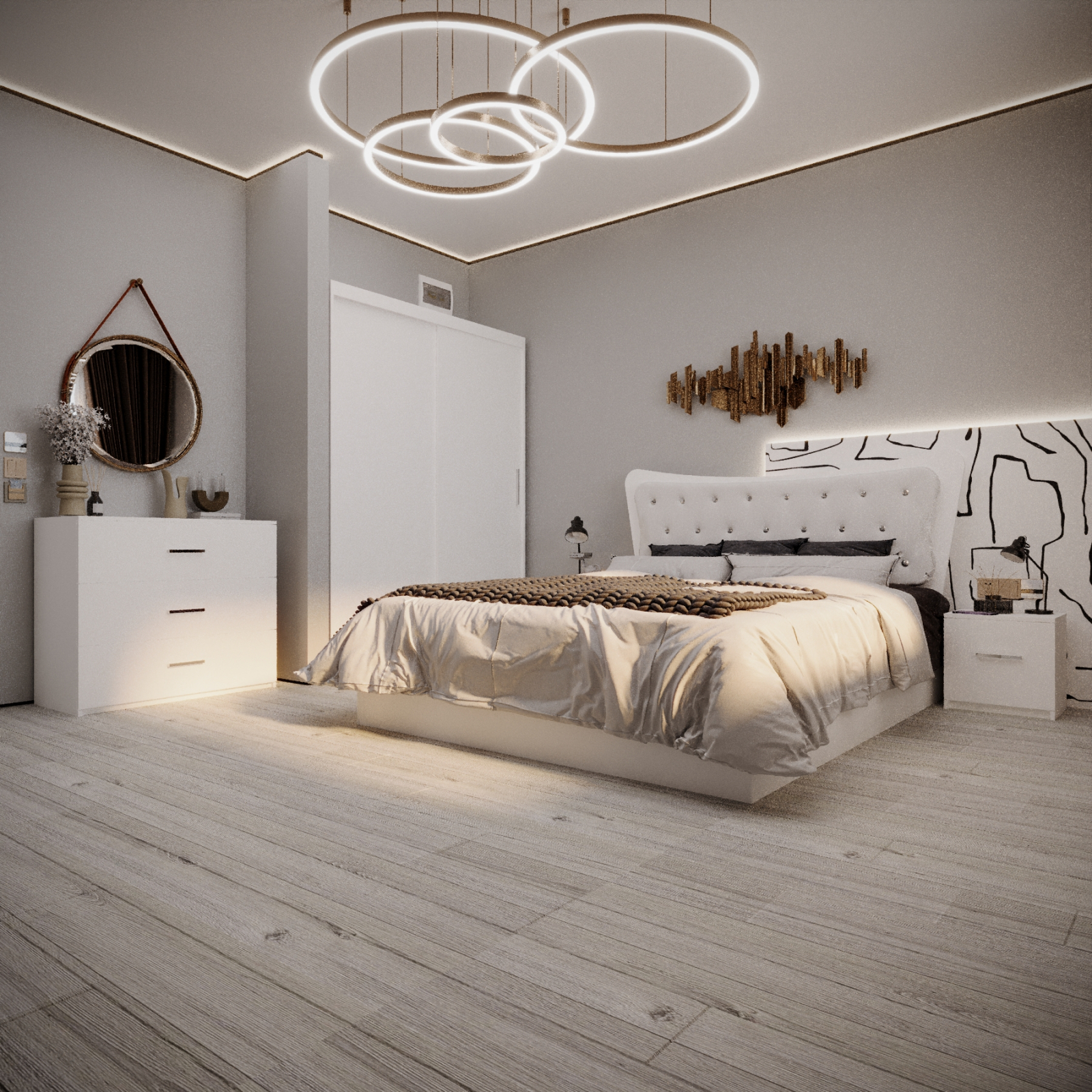 Dormitor Vista Tapitat 2 Usi Alb