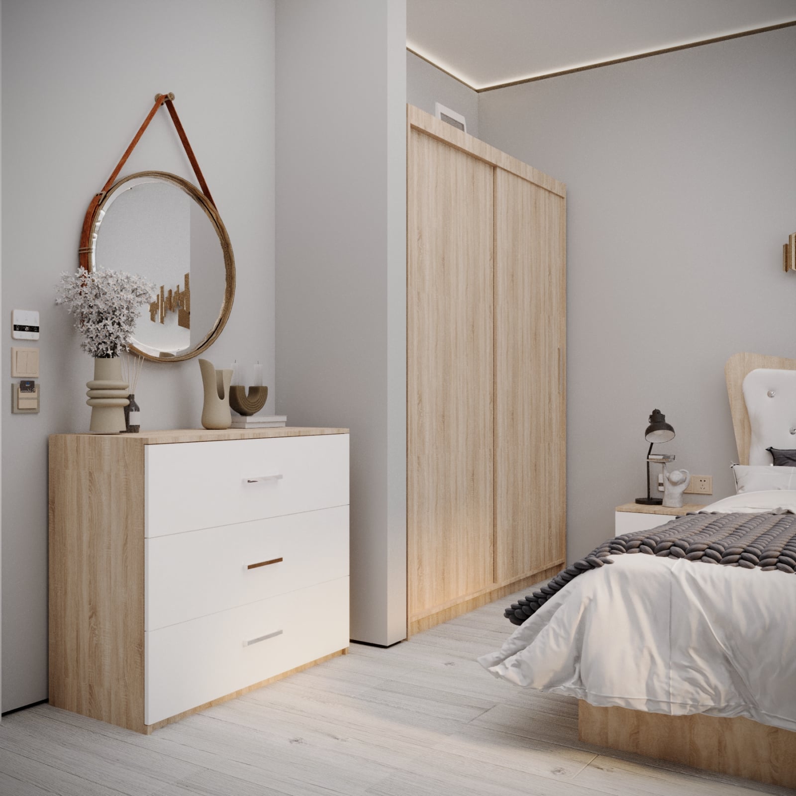 Ansamblul este realizat din PAL de 16mm, cant PVC si manere plastic.