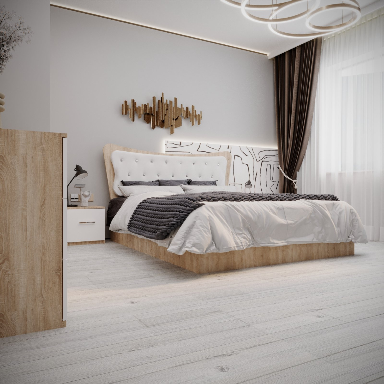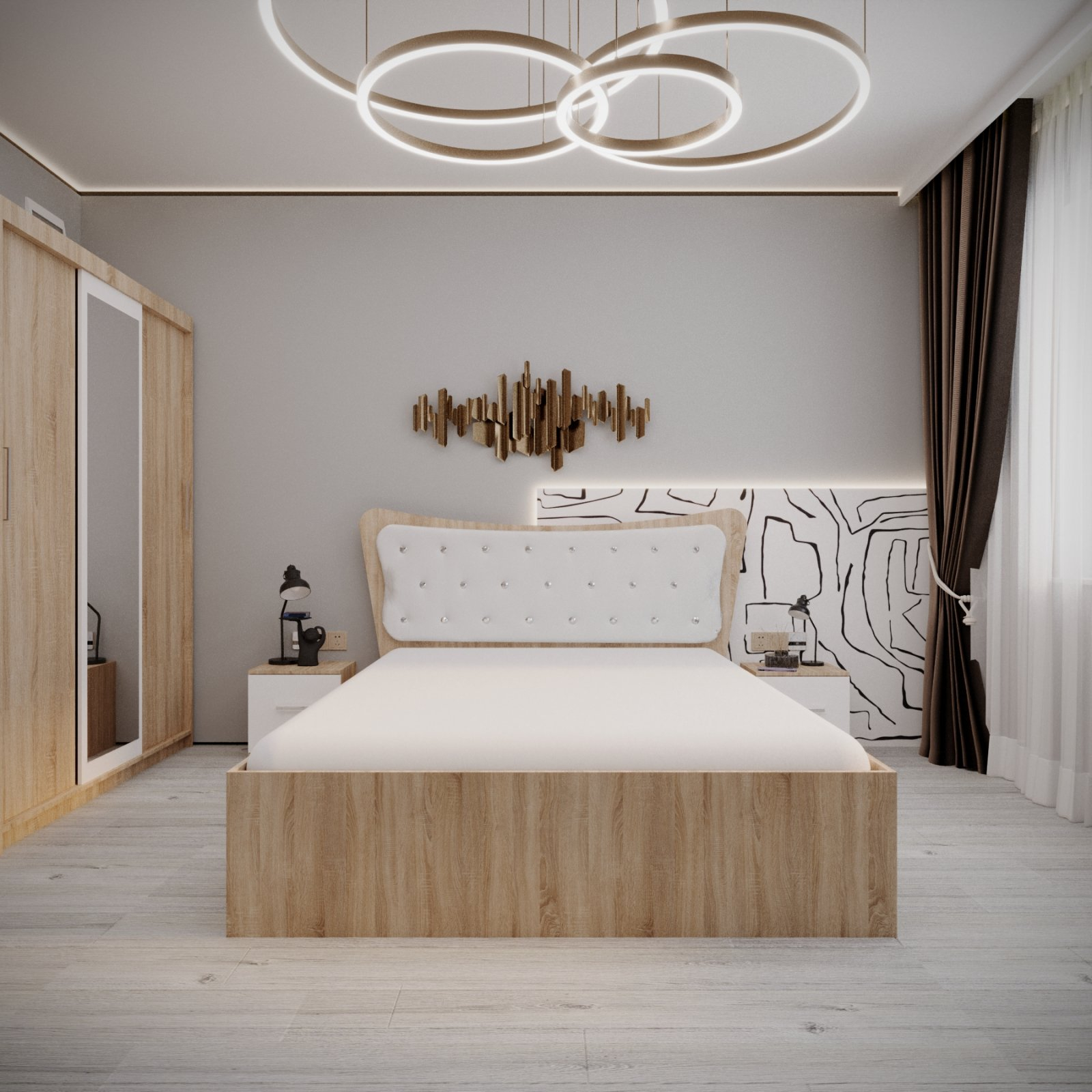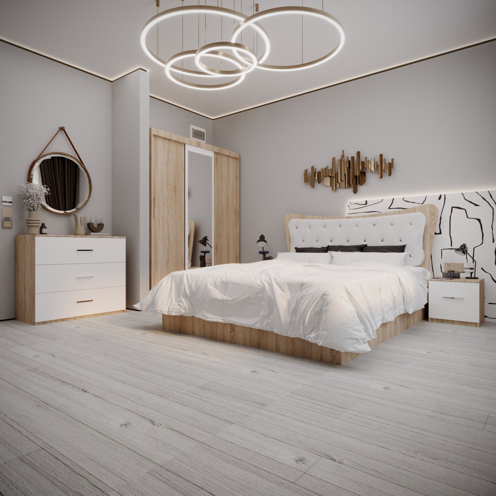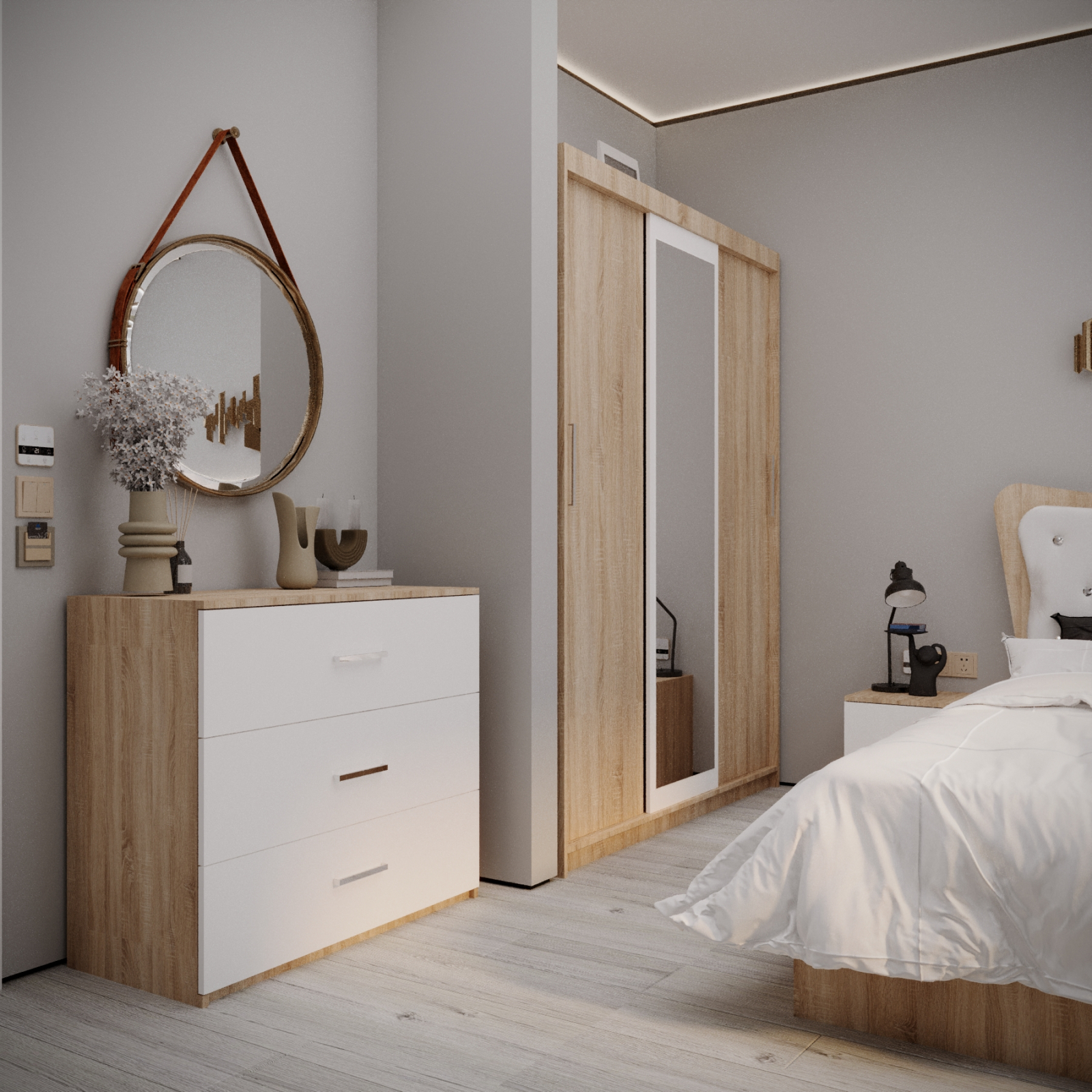 Dormitor Vista Tapitat Sonoma&Alb 3 usi