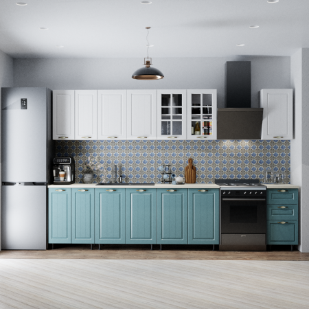 Mobila bucatarie Modena 2.6 m, MDF, Alb/bleu, 260 x 60 x 200 cm |