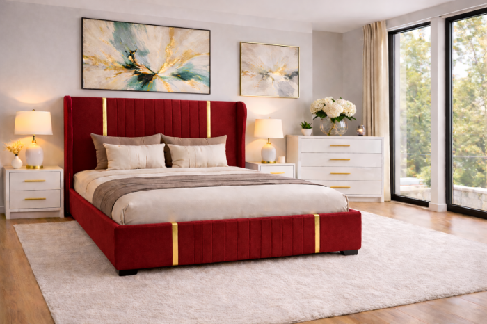 Tăblia înaltă de 120 cm creează un efect vizual impunător și oferă sprijin confortabil pentru momentele de relaxare. Laturile patului, cu o înălțime de 40 cm, conferă stabilitate și un aspect solid, perfect integrat în designul general al setului.